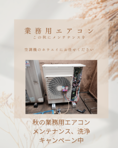 空調機のホウエイは、10月より秋の洗浄、メンテナンスキャンペーンを実施しておりますので、是非ご連絡ください(^^)/